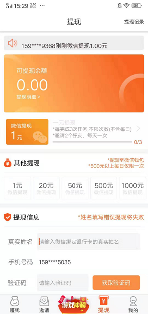 橙赚只需满1元即可提现,你可以直接兑换到微信或支付宝,两个方式供你选择,无手续费最快秒到账。