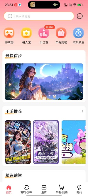 游派是一款拥有海量好玩游戏,用户玩游戏还能领奖励的app。在这里你可以玩到许多有趣的游戏类型,包括手游、热门、策略、消消乐、益智等等,多种的游戏类型总有一款适合你。轻松的玩玩游戏,就可以获得海量金币奖励,多重的游戏任务,大量的奖励等着你来拿。更有每日签到、日常挑战、段位赛等等的玩法,日常喜欢玩游戏的小伙伴,快来下载体验一下吧。