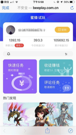 蜜蜂试玩试玩应用就能有奖励,对于新手用户非常的友好,无论你是谁,基本几分钟就能上手,然后就可以完成试玩赚奖励。且平台的任务量够多,一天也能获得不错的收入,碎片时间赚零花首选。