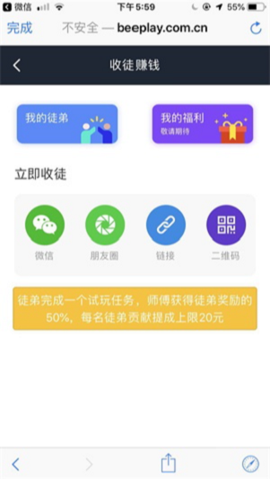 4、 邀请收徒玩法,通过分享邀请好友一起试玩,最高可得20元红包。