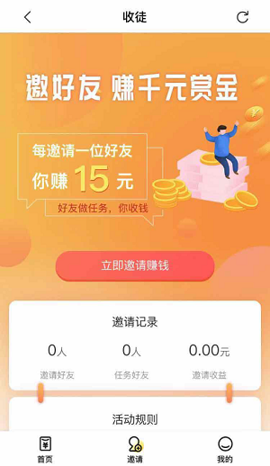4、 收徒赚钱,通过邀请收徒你还可以获得最高10元奖励。