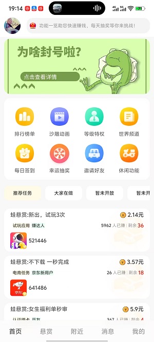1、 无论是社交圈子,还是任务,下载app即可体验。