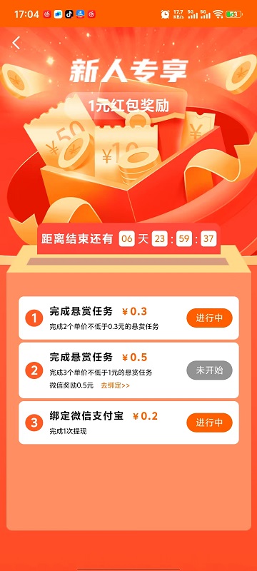 1、 首次下载app领新人福利,完成任务领1元红包。