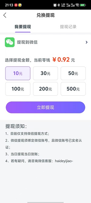 极速赚app的奖励如何提现?奖励余额满10元可以随时在个人中心申请兑换,一般是当日即可到账。