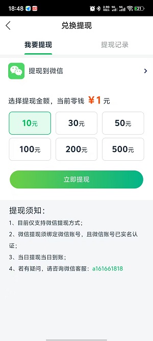 转文赚用户获得的奖励满10元,即可申请兑换,可以直接提现到微信/支付宝,需要一个工作日到账。